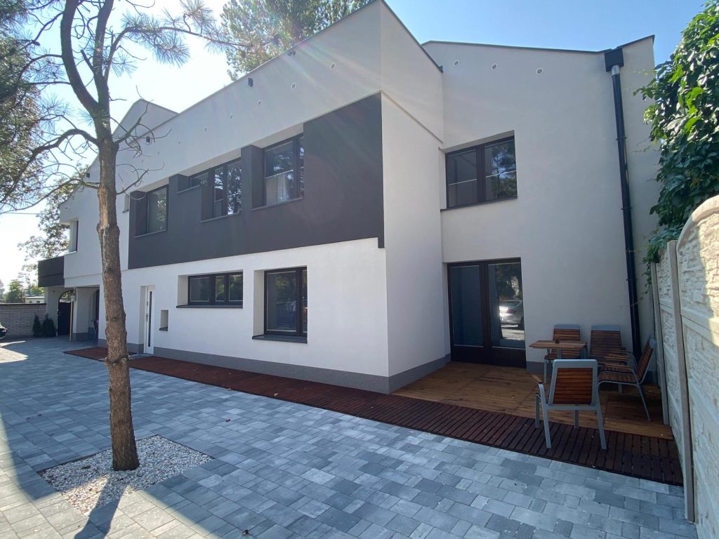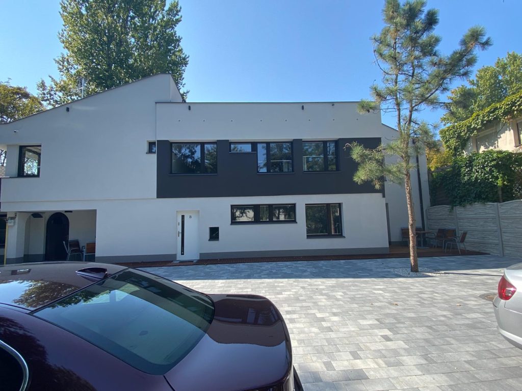 Renowacja tego budynku w Częstochowie to przykład, jak można harmonijnie połączyć prostotę formy z nowoczesnym designem. Jasna elewacja, minimalistyczne detale i przemyślane otoczenie nadały nieruchomości zupełnie nowy charakter. Projekt nie tylko poprawił estetykę, ale także podniósł funkcjonalność przestrzeni zarówno wewnątrz, jak i na zewnątrz.