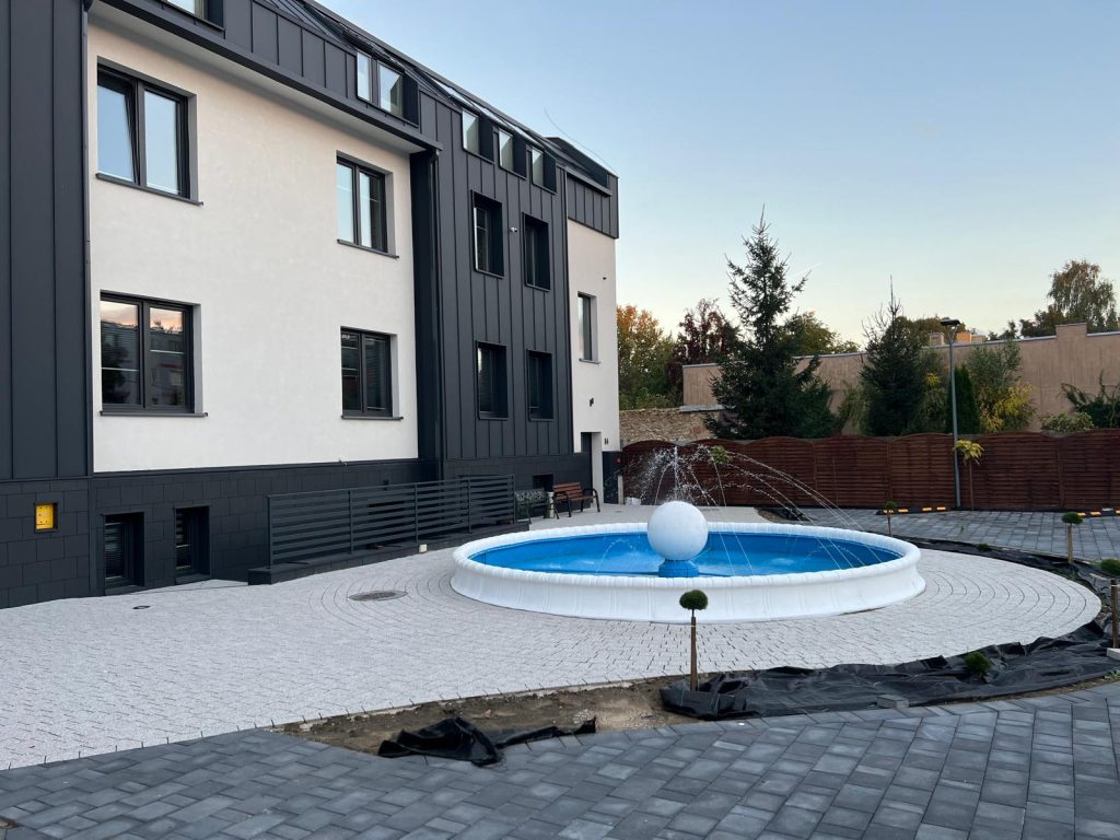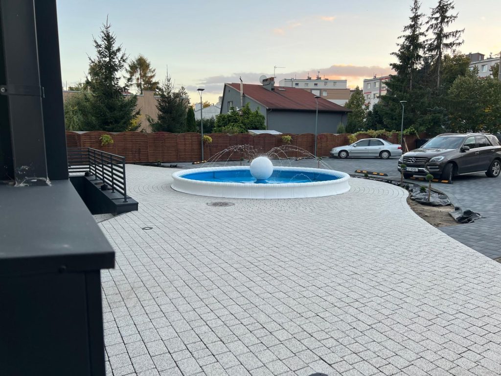 Dzięki starannie przeprowadzonym pracom budowlanym i rewitalizacyjnym, powstała przestrzeń, która łączy estetykę z komfortem użytkowania. Nowy parking, strefa z fontanną oraz uporządkowane otoczenie podkreślają wysoką jakość realizacji.